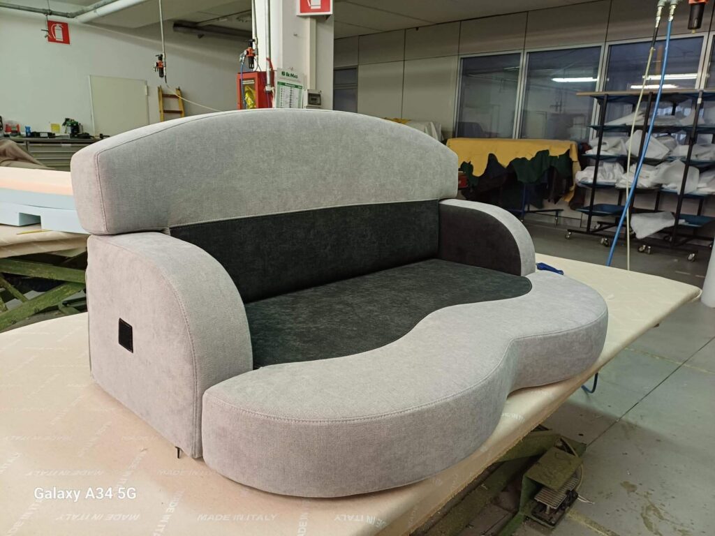 Das Ergebnis spricht für sich: Auf dem Bild sehen Sie ein typisches Vorher-Nachher-Beispiel – von einem einfachen, abgenutzten Polster hin zu einer hochwertigen, passgenauen und modernen Lösung. Wir optimieren bestehende Polsterungen und statten sie mit neuen Bezügen und maßgefertigten Komponenten aus – ganz nach Ihren Wünschen.